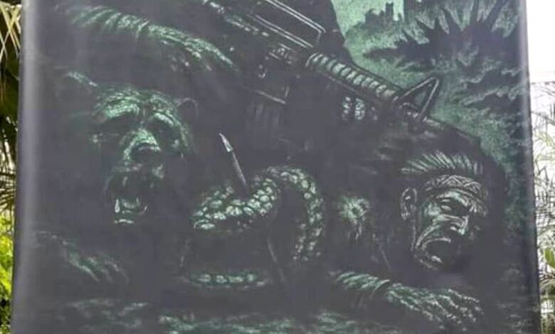O conteúdo, porém, foi classificado como racista e violento por integrantes do movimento Levante Indígena da USP, que retiraram e destruíram a faixa. Em manifesto, o coletivo repudiou a representação e denunciou que a violência simbólica reforça séculos de opressão contra os povos originários.